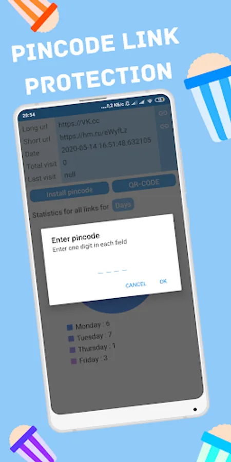 ๏ Pincode protection of the link - you will be redirected to the site when you enter the pincode