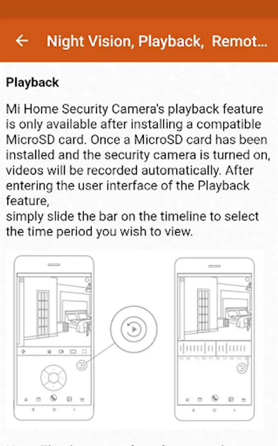 This mobile app is a guide that provides information about the Mi Home Security Camera 360. From our mobile application, you can learn information about the device, night vision, playback, mounting the device on the wall and Mi home camera instructions.