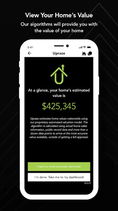Upraze was developed by Top Realtors, Appraisers and Investors from across the country to provide the only home application that provides you a REAL value and CASH offer for your home! Through proprietary algorithms created through recent home sales, data and improvements you have made, we are able to provide you an accurate value and CASH offer for your home without ever stepping foot inside! There are three ways to determine your homes true value and offer amount.