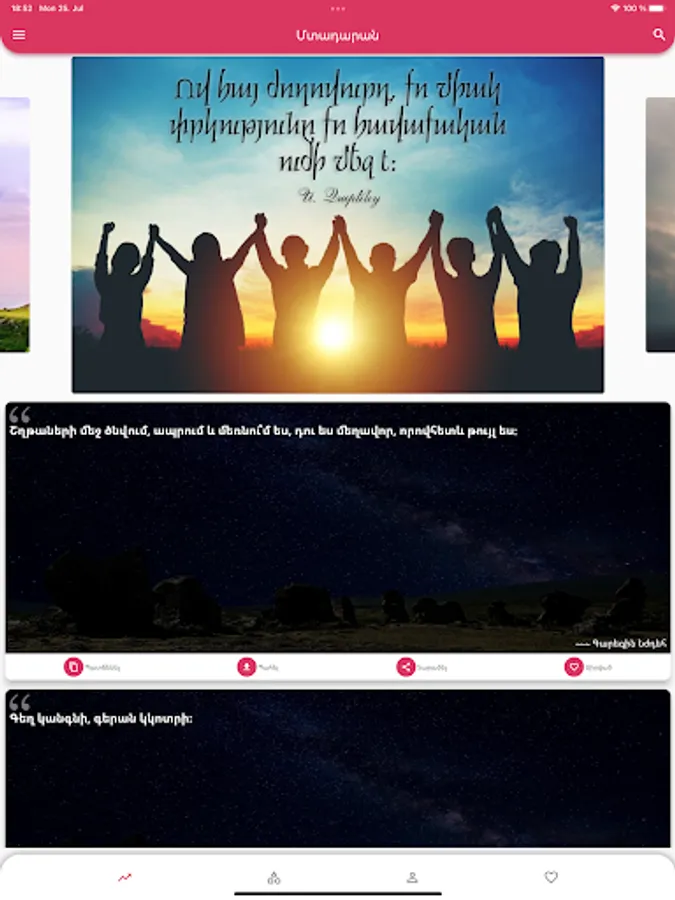 Oh, Armenian people, your only salvation lies in the power of your unity - Y. Charents