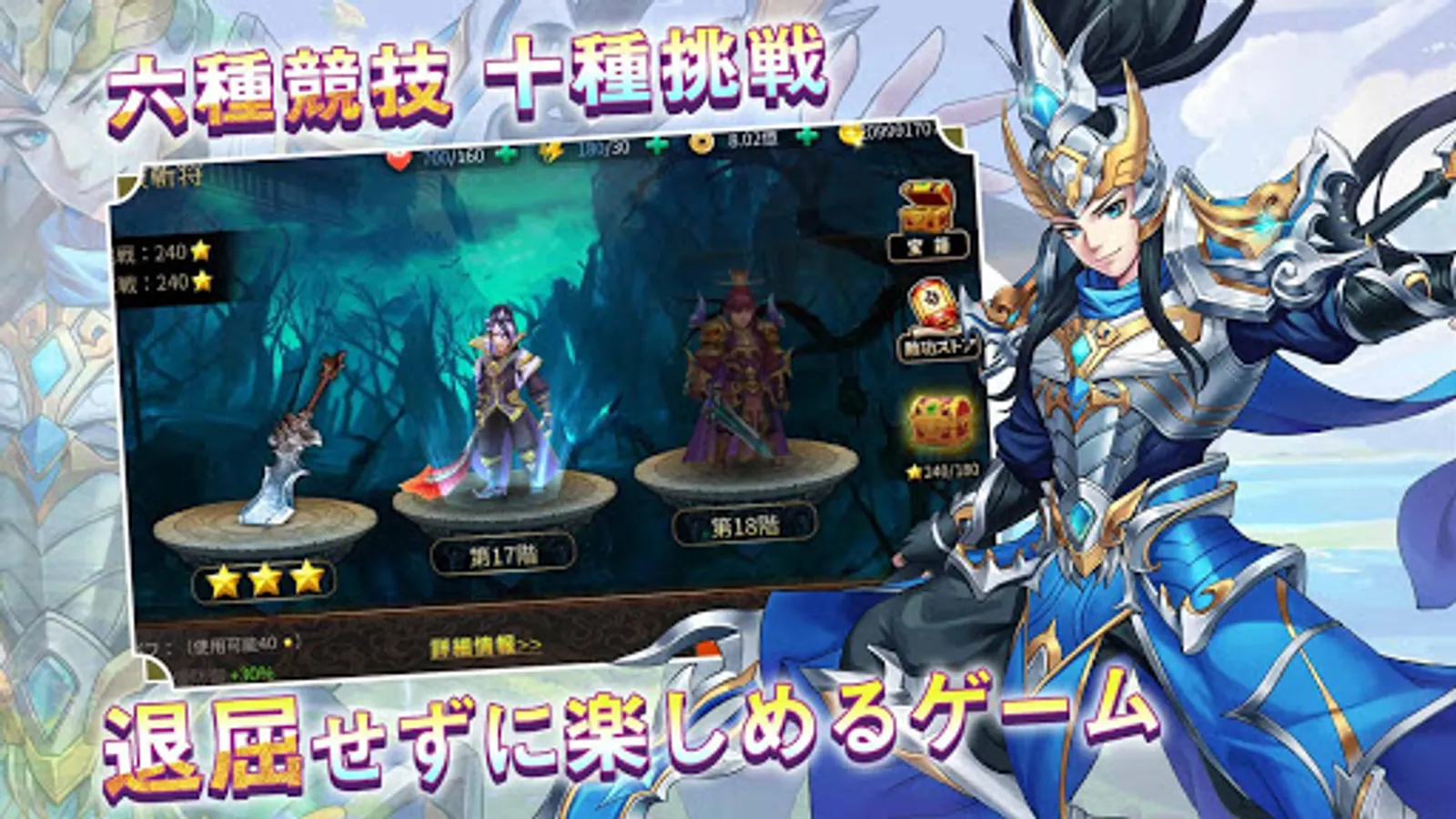 44章節があり、5百余りのステージがプレイヤーの挑戦を待っています。異なるステージで属性の異なるそして技能の多様な敵軍の試練に直面します。さまざまな挑戦に直面しているプレイヤーは、難関を乗り越えるため、絶えず陣容調整と装備交換をしなければなりません。ステージごとに3つの難易度に分けられます。難易度の異なるステージをクリアするには、そして報酬を獲得するには、知恵を絞る必要があります。