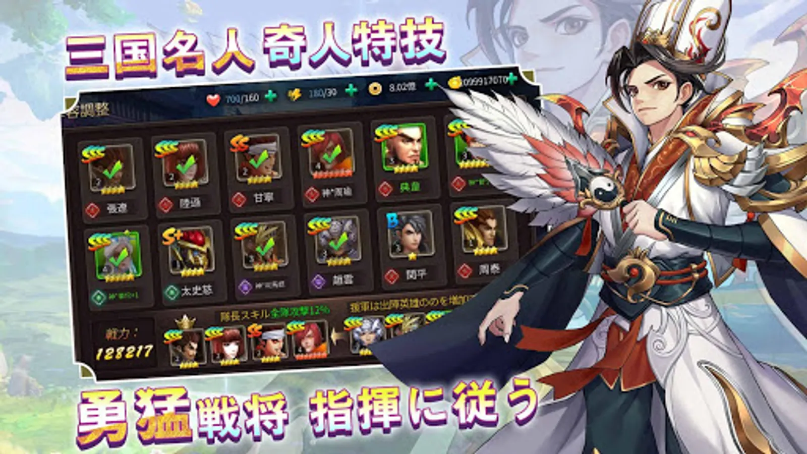 魏、蜀、呉、群の四つの国から合計80人近くの三国時代の有名な英雄を募集することができます。それぞれの英雄は自分専属のスキル、神武器、ペットを持っているため、異なる英雄の育成と使用で独特の戦略性と戦闘体験を齎せます。異なる英雄を組み合わせる事で、「三国戦神記」の世界の体験をよりリアルにより豊かにします。