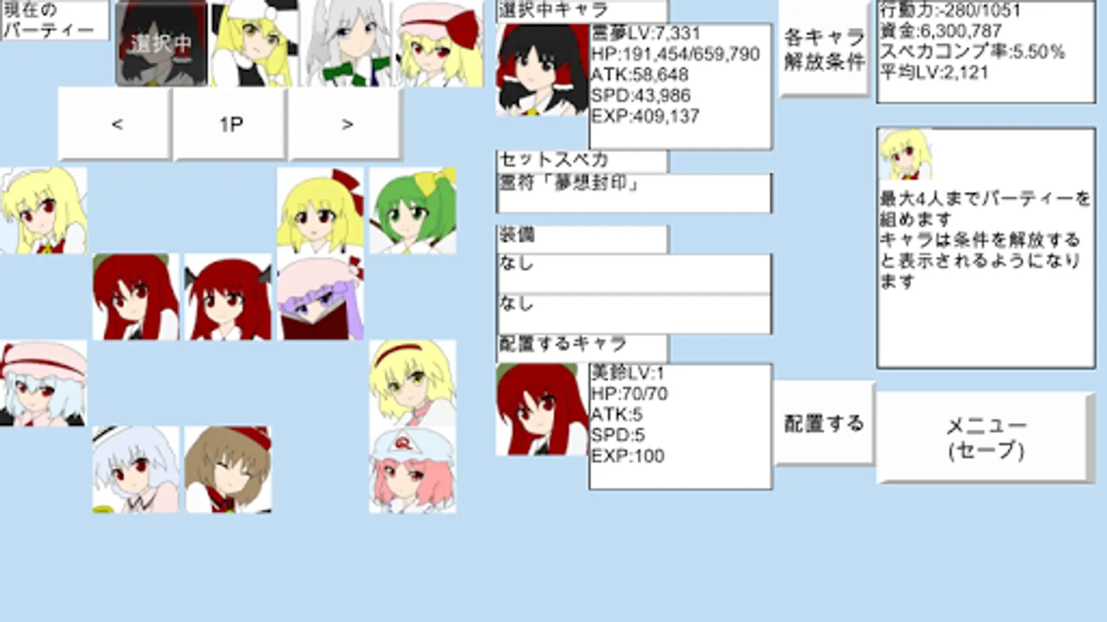 平均LV:現在パーティーに組み込めるキャラの平均レベルです