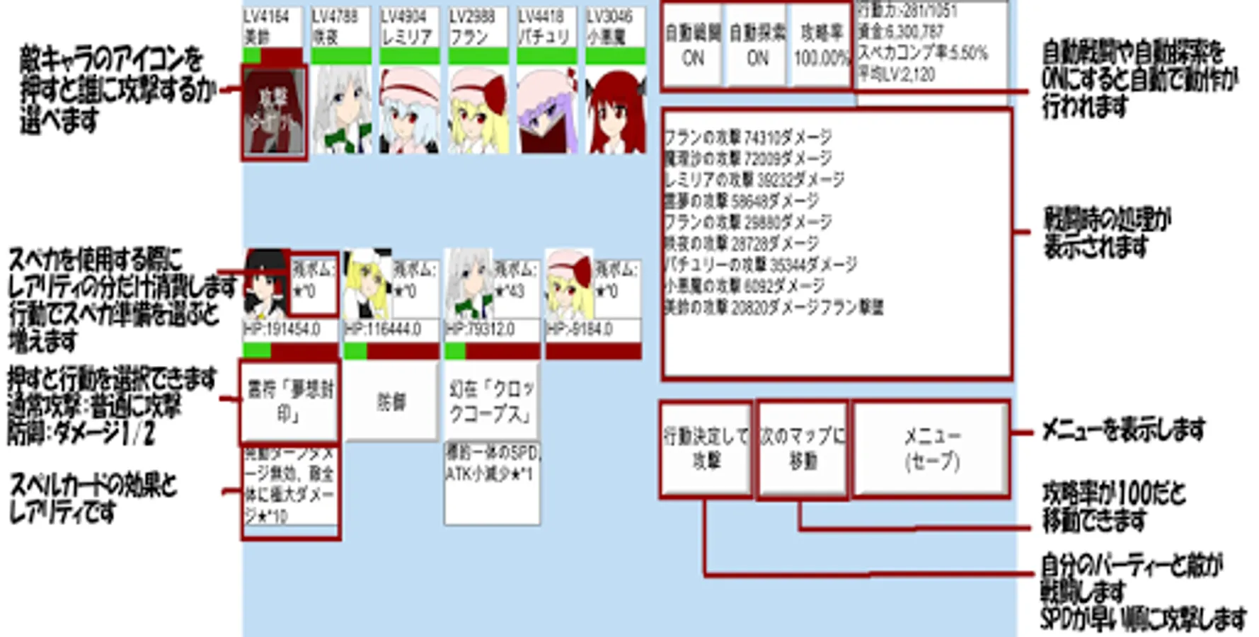 探索ボタンを押してマップをクリアしたり