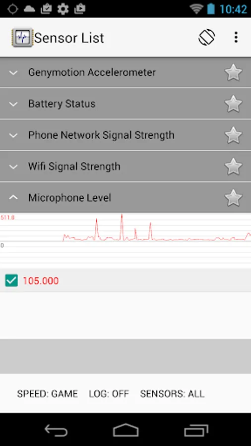 Including accelerometer, magnetic field, orientation, temperature, light...