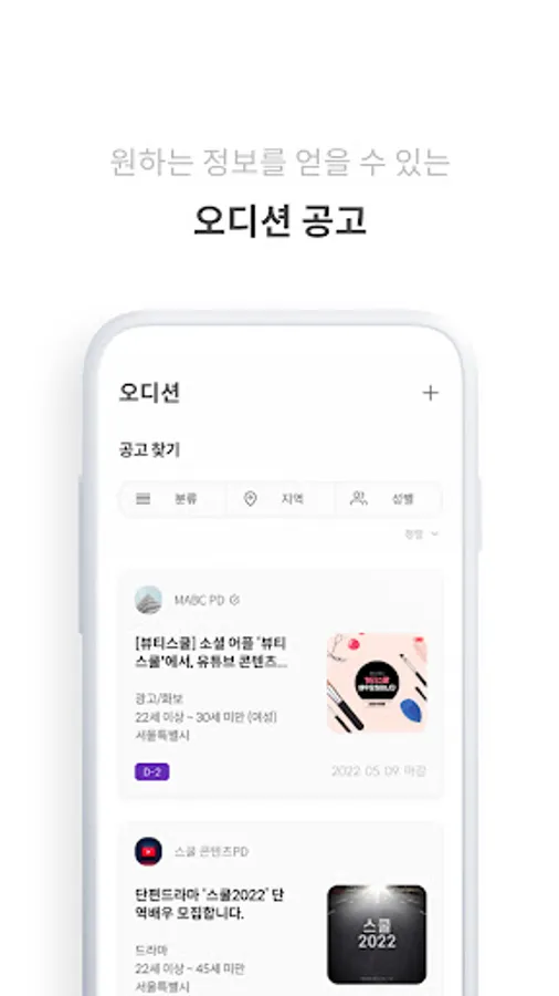 찾기 힘든 오디션 정보를 한 곳에서 확인해보세요.