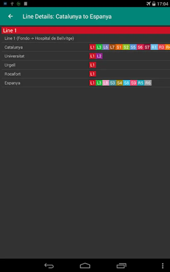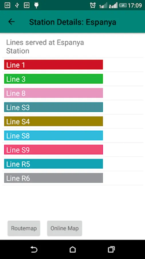 You can also view the detailed station list for each train line in Barcelona. You can long tap on any station name from the list to see it on online maps.