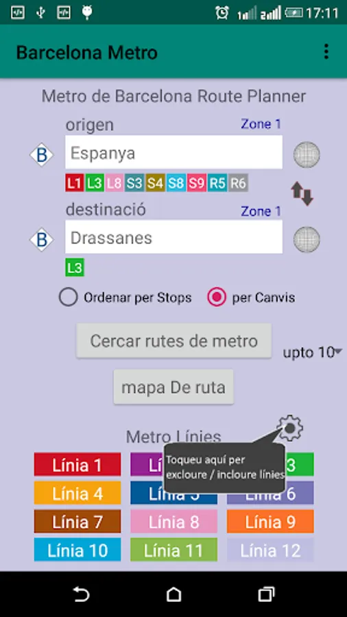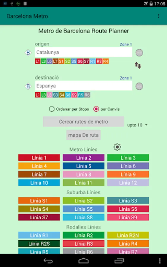 This App helps you find train routes which can be used to travel from one location to another in Barcelona city across Metro, Rodalies, Suburban train and Tram lines.