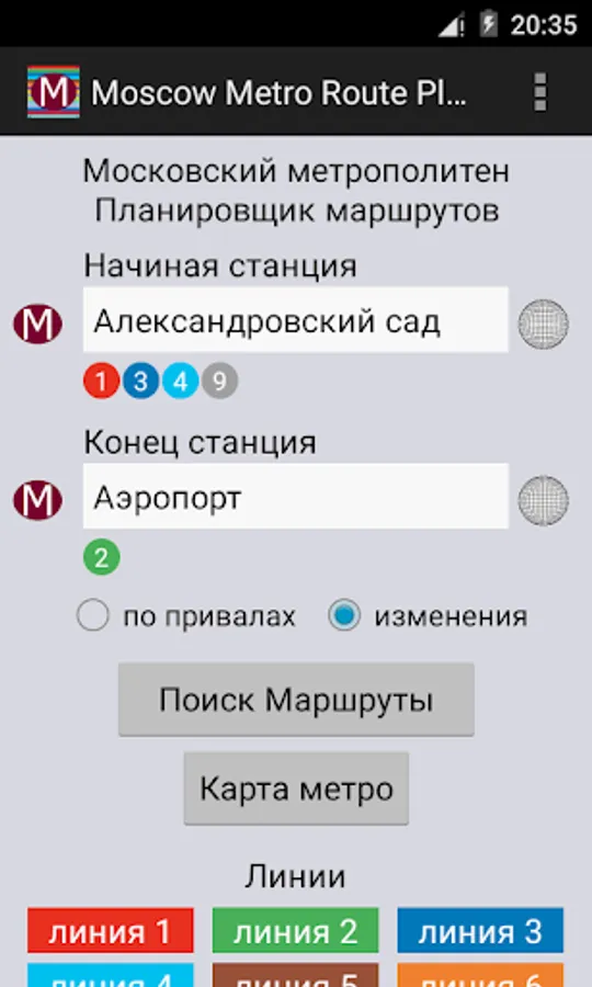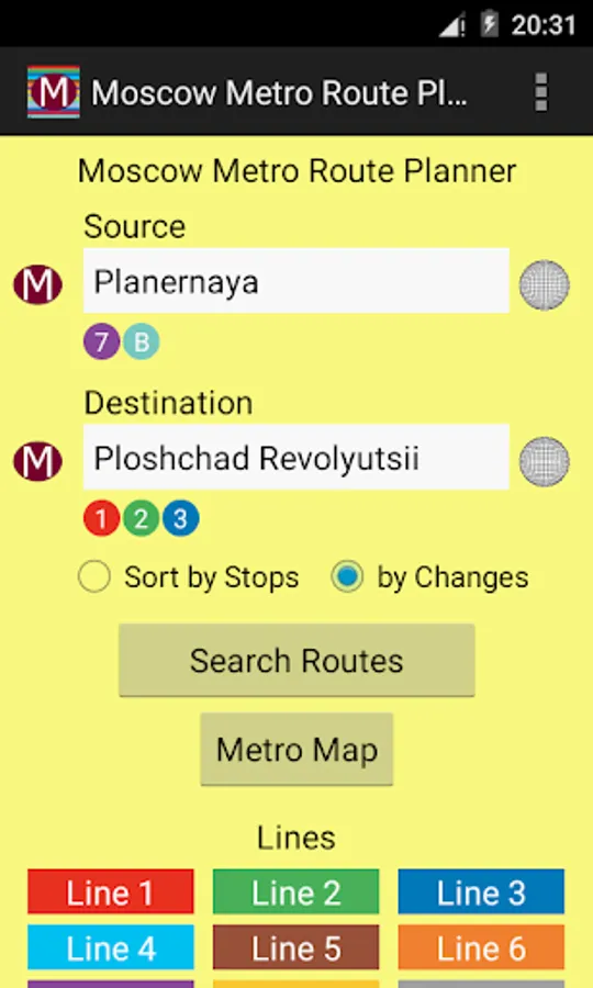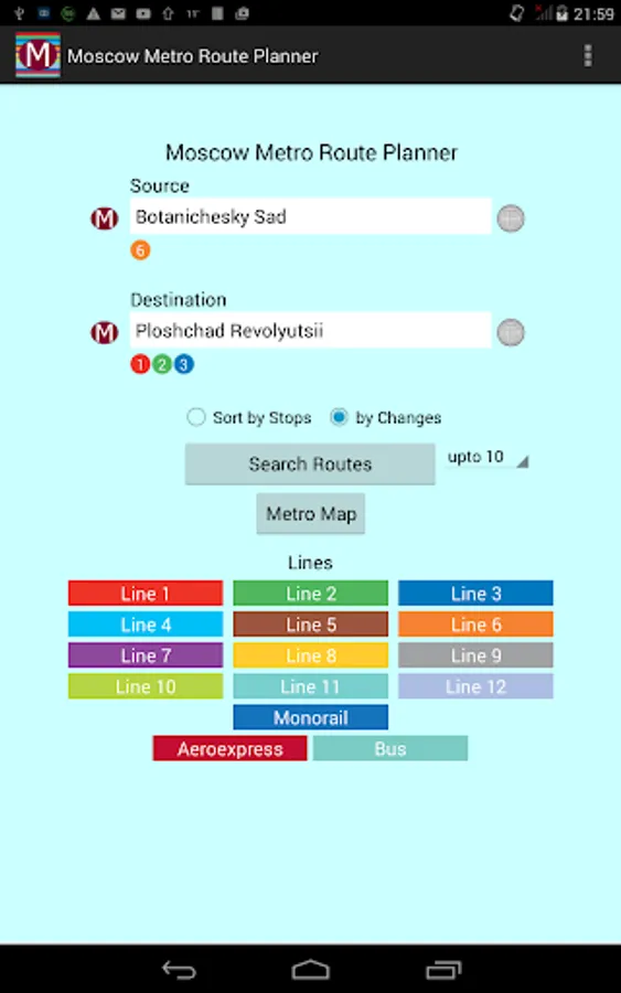This App helps you find routes which can be used to travel from one location to another in Moscow city.