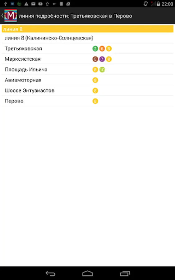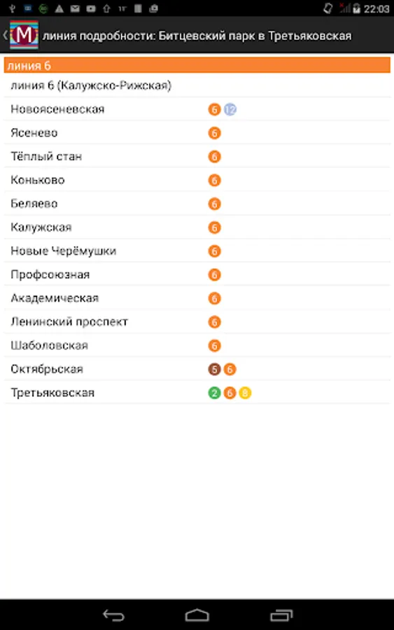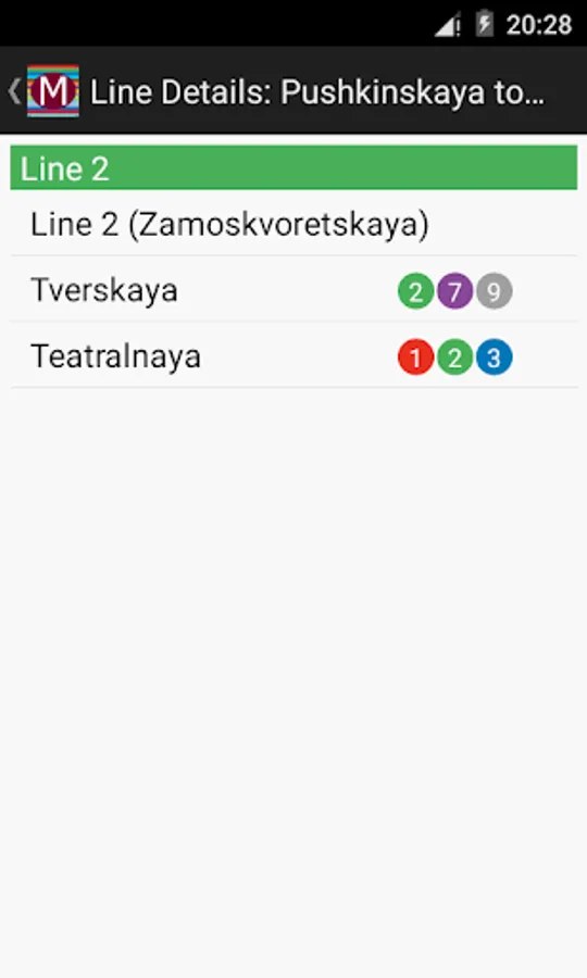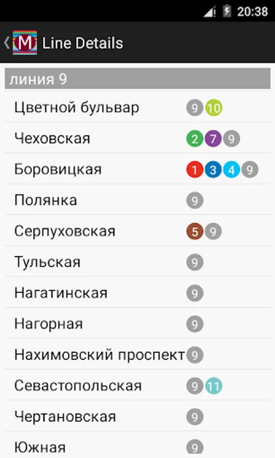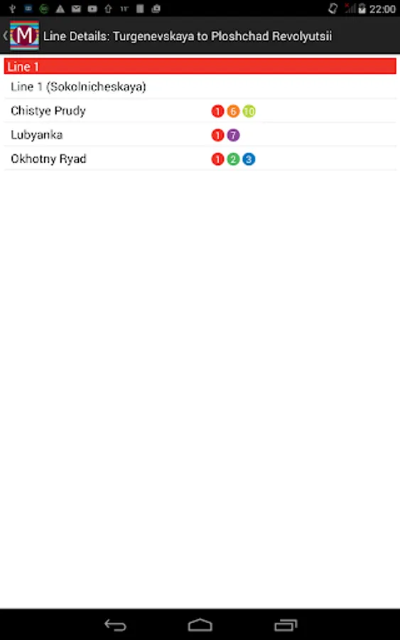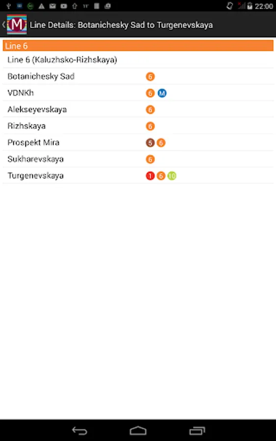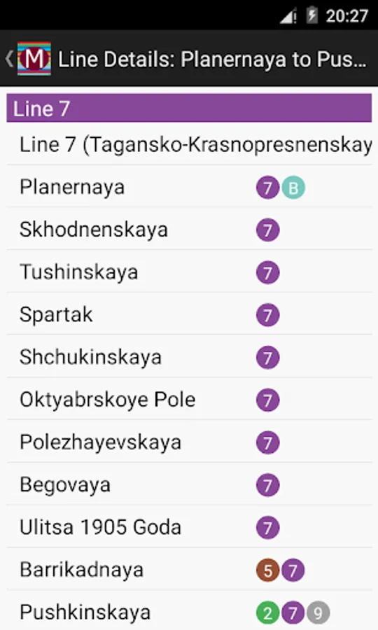 You can also view the detailed station list for each train line in Moscow. You can long press on any station name from the list to see it on maps.
