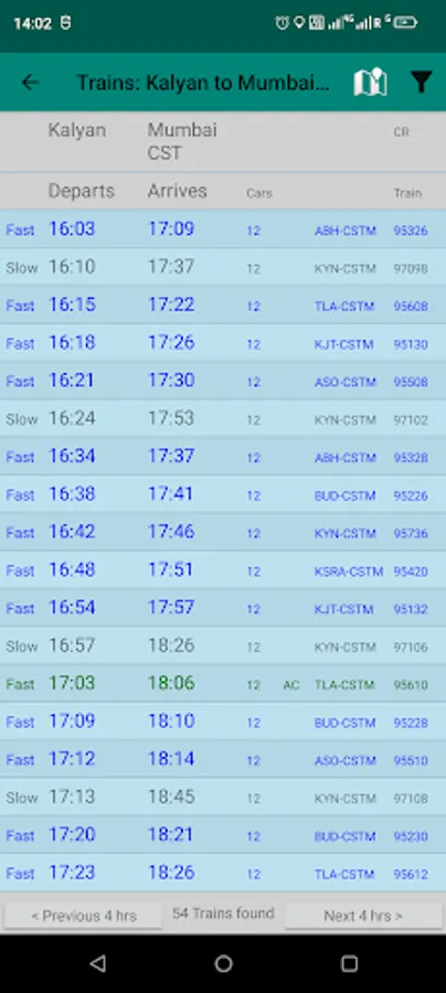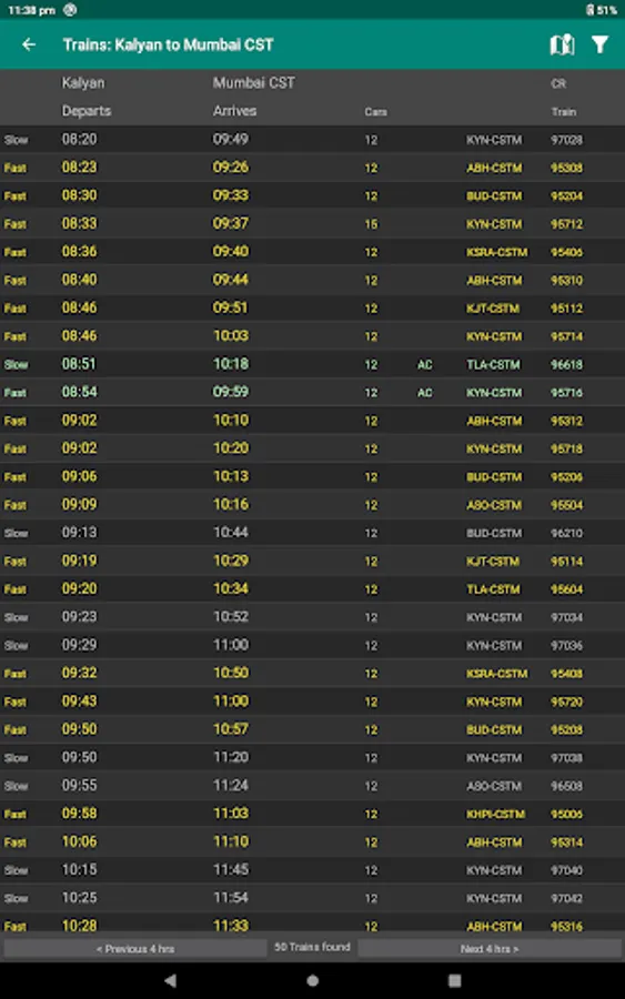- An option to search trains for the next 2 hrs / 4 hrs / 12 hrs