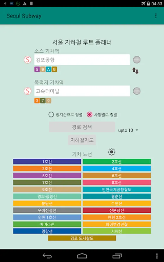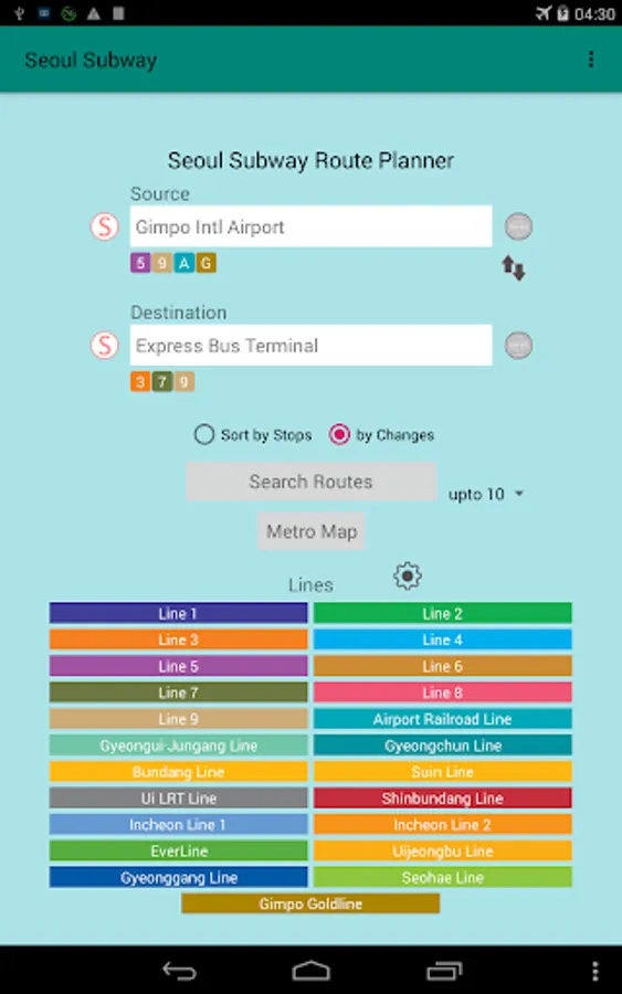 This App helps you to find train routes which can be used to travel from one location to another in Seoul city.