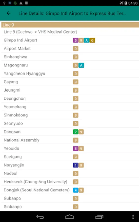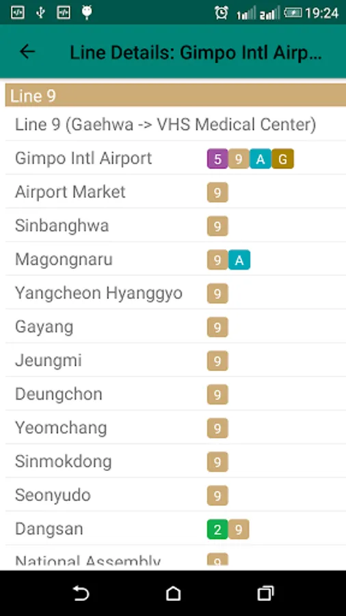 You can also view the detailed station list for each metro train line in Seoul . You can long tap on any station name from the list to see it on online maps.