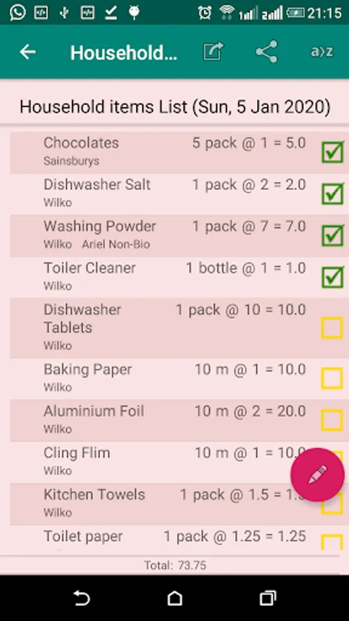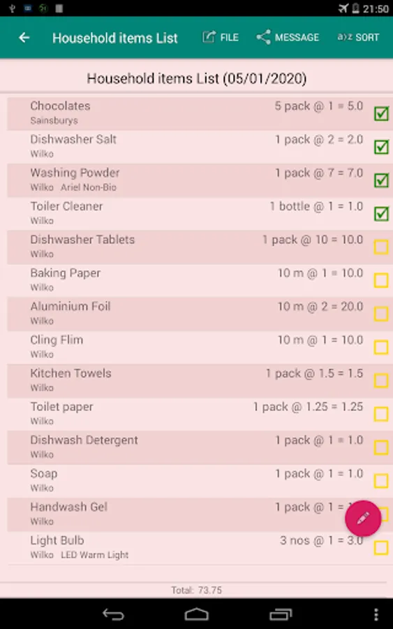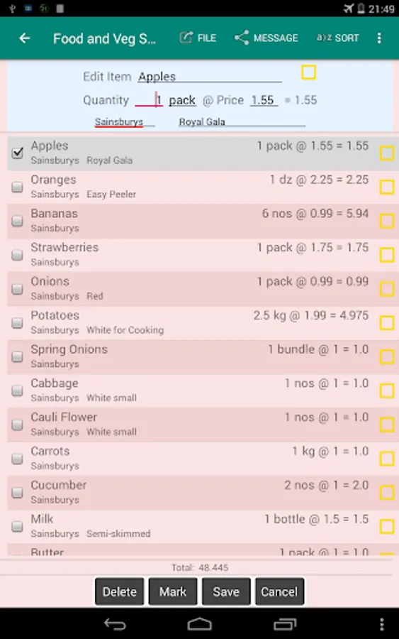 The list can also be used in Display mode which allows you to mark items as Pending or Completed or Not Available, to help you on the go while shopping.