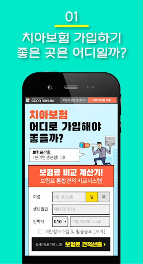- You can compare / quote / calculate dental insurance from major insurance companies in Korea by simply entering information without membership registration or complicated authentication procedures!