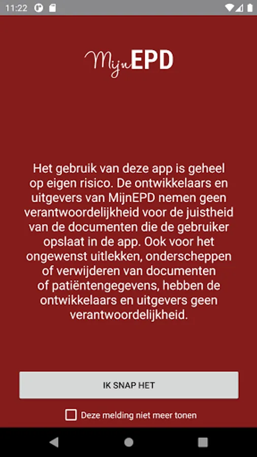 Mijn EPD is een persoonlijk patiënten dossier app waarmee je gemakkelijk je eigen patiënten gegevens kunt rubriceren en bewaren. Door een foto te maken van lab uitslagen, röntgen foto’s, CT of MRI beelden, receptenlijsten, artsenbrieven of afwijkingen aan het lichaam, zoals bv huiduitslagen of snijwonden, heb je uitslagen altijd snel en overzichtelijk bij de hand en ben je vrij om deze te delen met wie je maar wil. Nu staan dit soort gegevens vaak in je Galerij, tussen alle andere foto’s waar ze niet snel te vinden zijn en niet zijn afgeschermd. De app is volledige privacy proof, omdat er geen gegevens verstuurd worden, maar alleen lokaal op je telefoon worden opgeslagen en ook niet in je galerij komen. Wel wordt er de mogelijkheid geboden om gegevens te versturen, wat geheel voor eigen risico is. Vooral voor patiënten die bij meerdere verschillende artsen lopen is het van cruciaal belang dat een ieder goed op de hoogte is van hoe het er met de patiënt voor staat. Daarnaast kan deze app er voor zorgen dat er een vlotte uitwisseling van gegevens ontstaat, zodat er ook veel sneller beslissingen kunnen worden genomen en de zorg aan de patiënt geen onnodig vertraging oploopt.