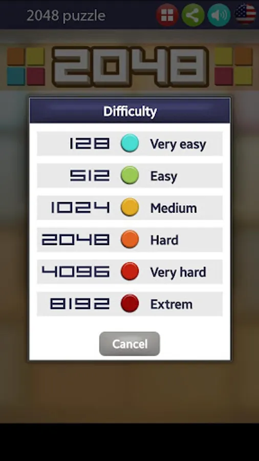 2.- 5 difficulty levels: 128, 512, 1024, 2048, 4096 and 8192.