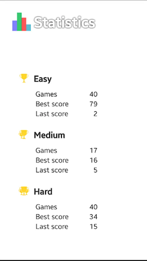 - Three different difficulty levels.