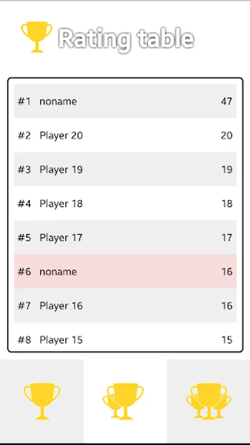 - Rating table. Compete against players from around the world.