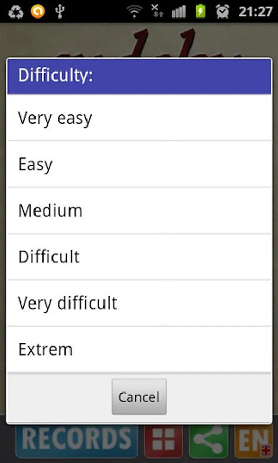 2.- 5 difficulty levels: Very easy, easy, medium . hard, very hard and extreme.