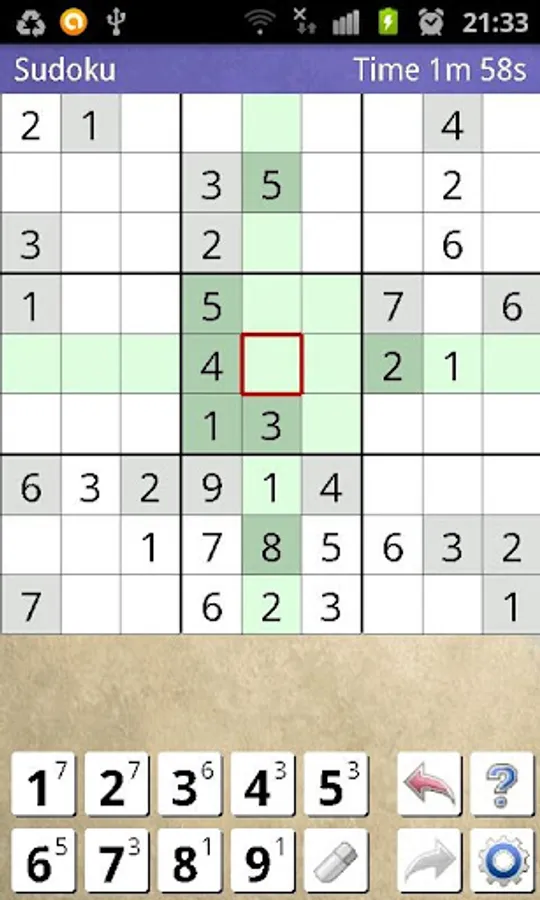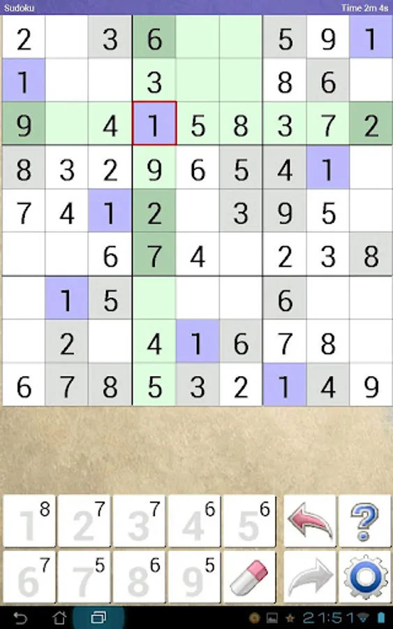 - You have to complete the empty cells with one number from 1 to 9.
