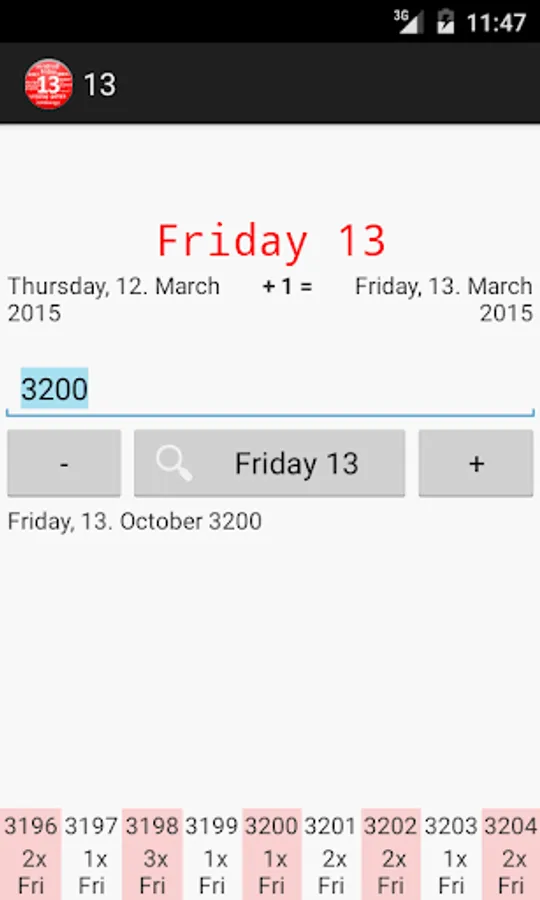 Just enter the year and find out when and how many Fridays 13th is in this year.