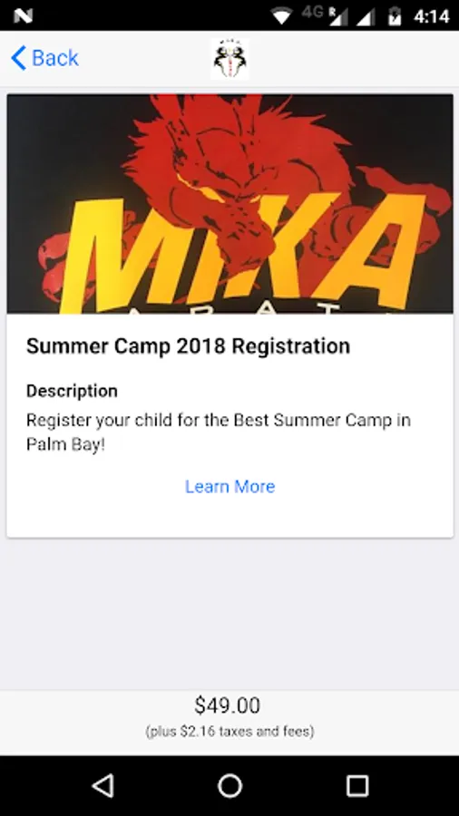 Our member app shows various programs we offer at our studio such as Karate, After School, Summer Camp, and Day Camps.