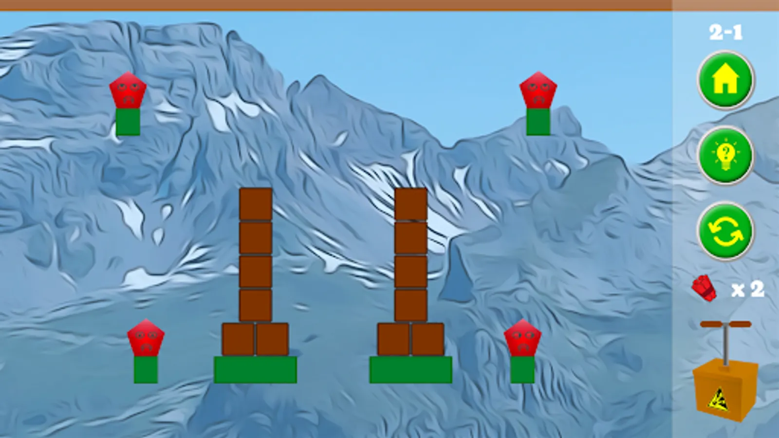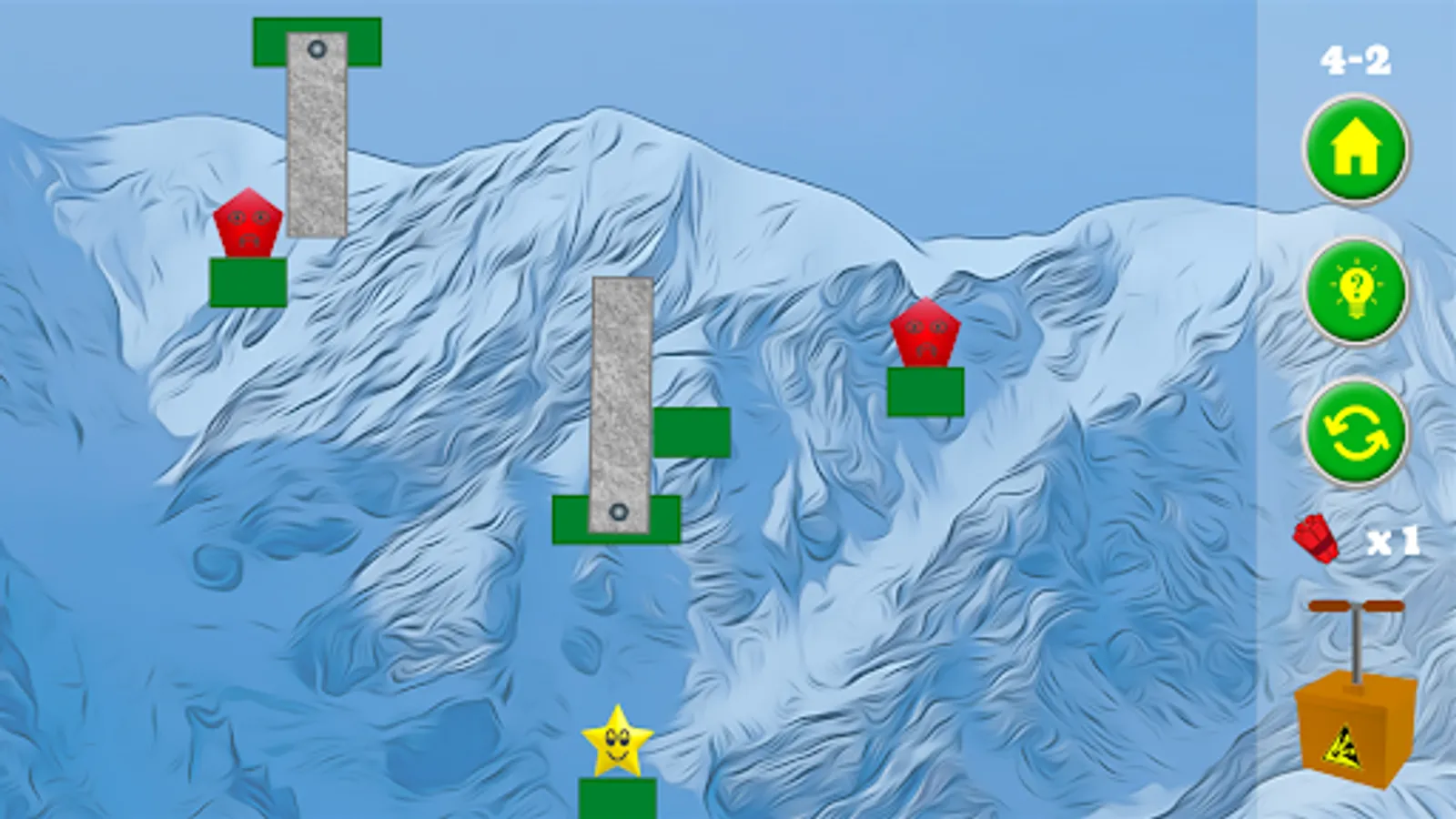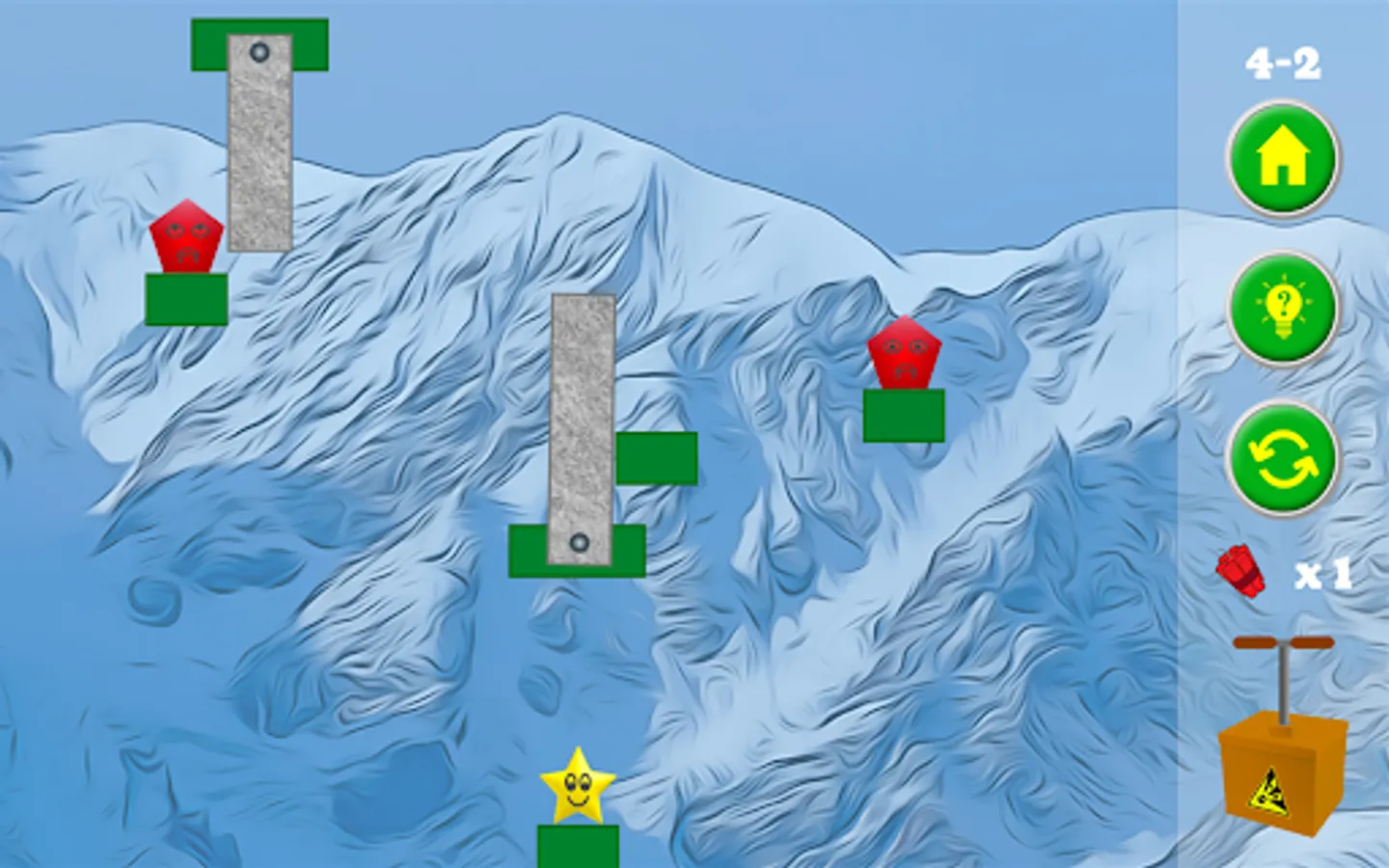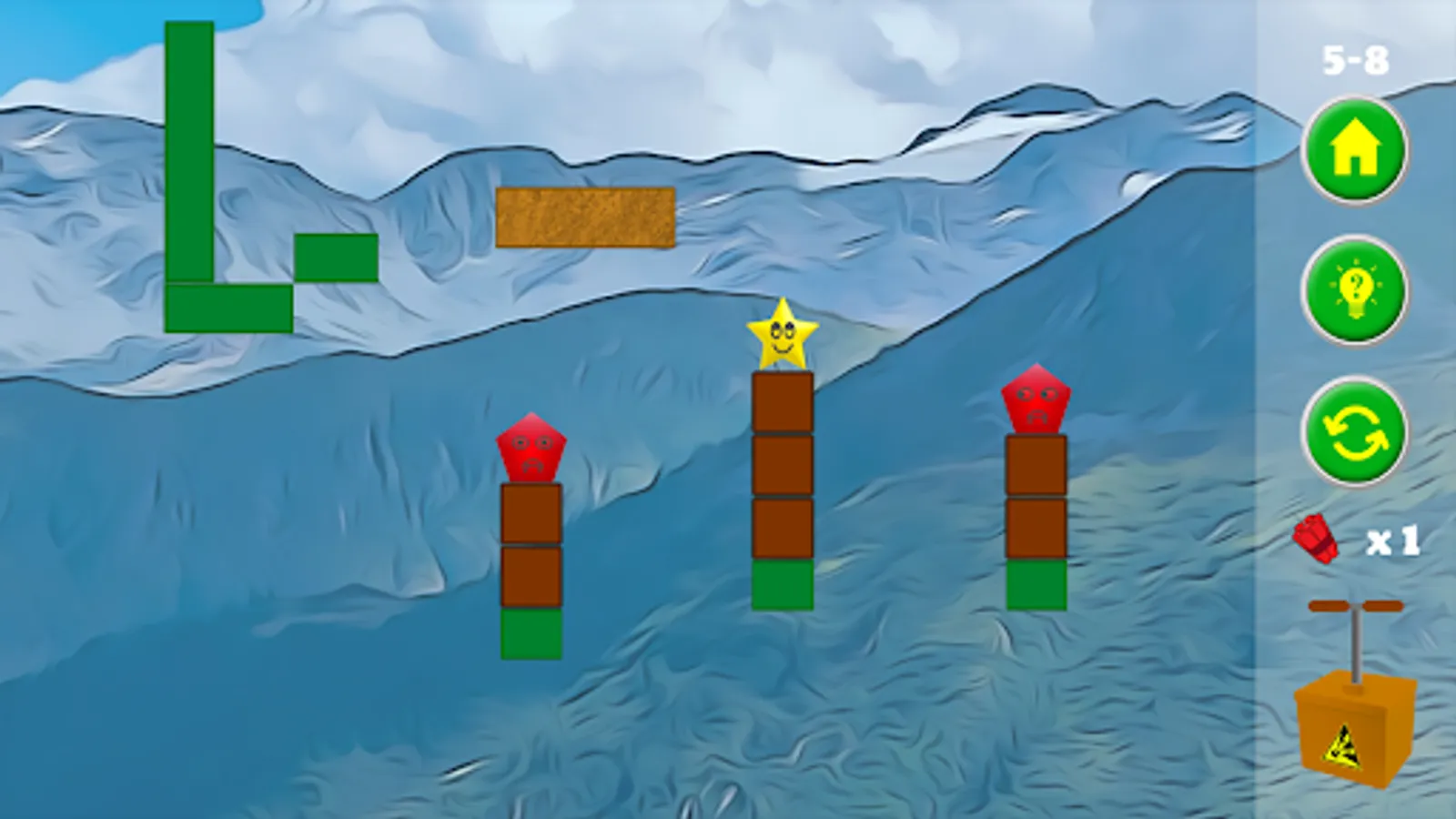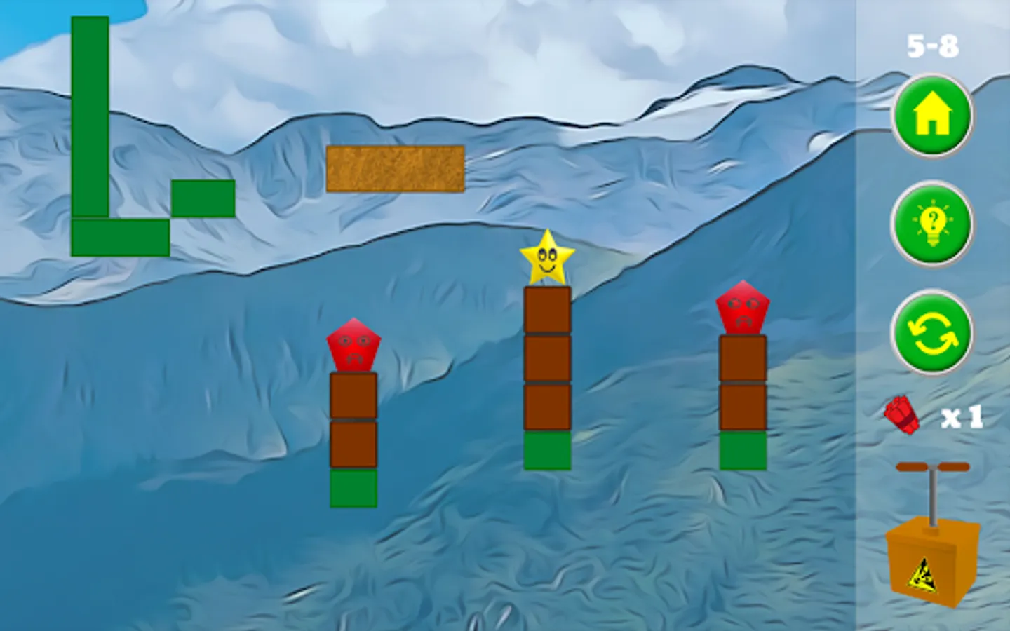 Place the bombs and dynamites in a way to only blast the five-sided polygons and keep the cute stars untouched. You just need to tap on the detonator to initiate the explosion. To earn a coin for a level, try to blast the bad guy away using as few explosions as possible.