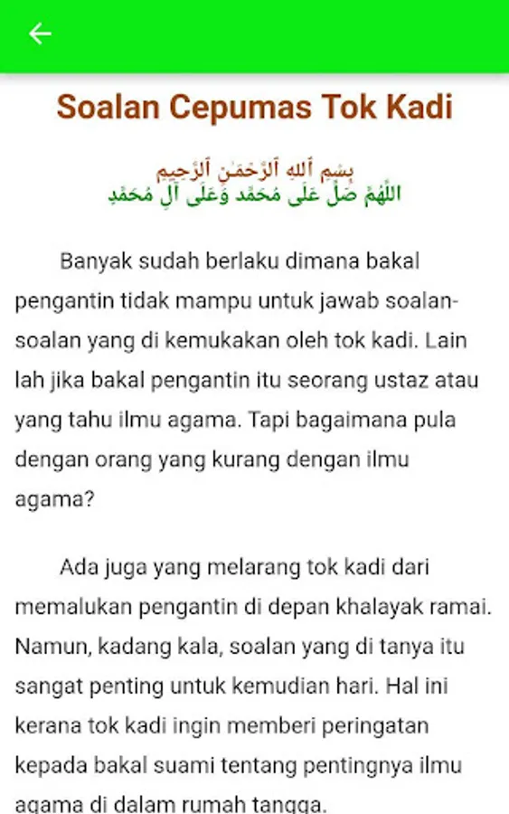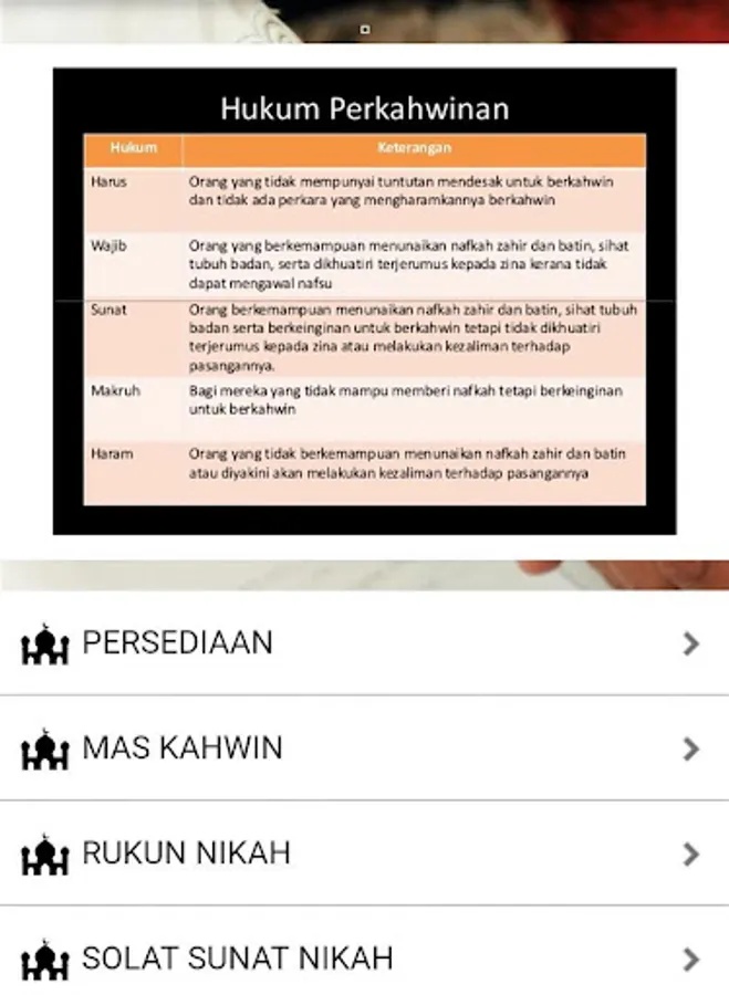 Aplikasi akad nikah ini dibangunkan bagi membantu pasangan pengantin terutamanya pengantin lelaki untuk menghafal lafaz penting yang akan digunakan semasa majlis pernikahan mereka. Terdapat banyak tips dan info sebelum, semasa dan selepas perkahwinan untuk dipelajari dan diamalkan oleh setiap bakal pengantin yang ingin menjalankan majlis pernikahan mereka. Aplikasi ini sesuai untuk semua peringkat golongan usia dan mudah digunakan dimana sahaja anda berada. Selamat melangkah ke alam perkahwinan dan tahniah di atas kejayaan anda