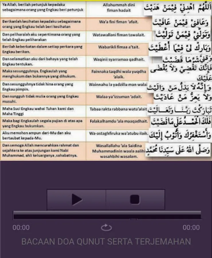 Doa Qunut Subuh, Qunut Nazilah mp3 Lengkap teks arab latin terjemahan bahasa latin serta terjemahan dari doa qunut