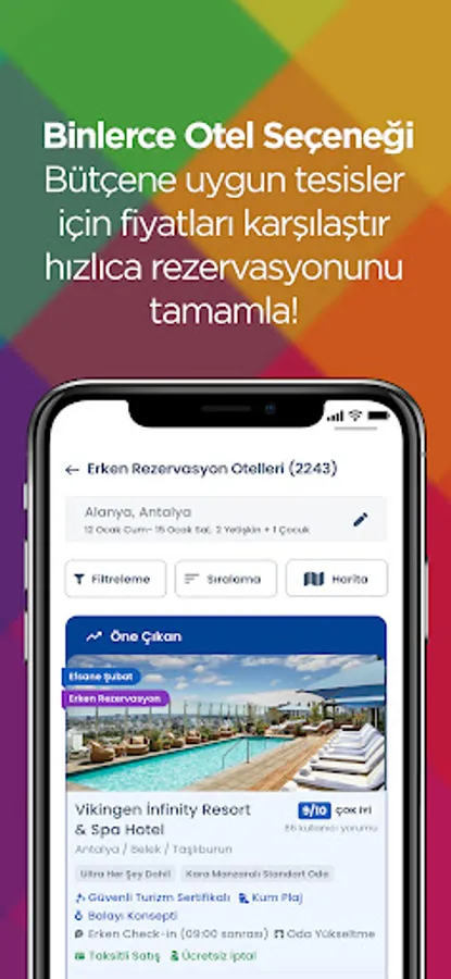 -You can make your domestic hotel reservations quickly and securely on our mobile application, and you can discover the most special places of Turkey with the search for hotels and search tours options.