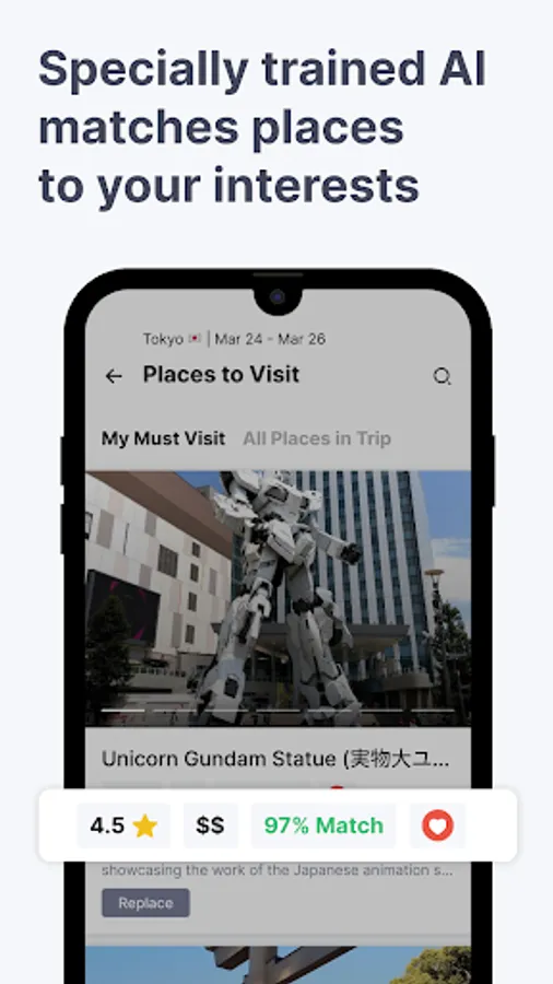 Tweak those itineraries with such an easy interface that you’ll get blissfully lost in travel planning...if it’s your thing. If it isn’t, your trip plan is already made for you! No more sorting through a gazillion of irrelevant options: just download your personal planner & AI travel guide for a perfect journey.
