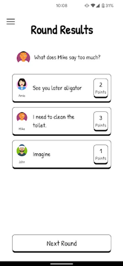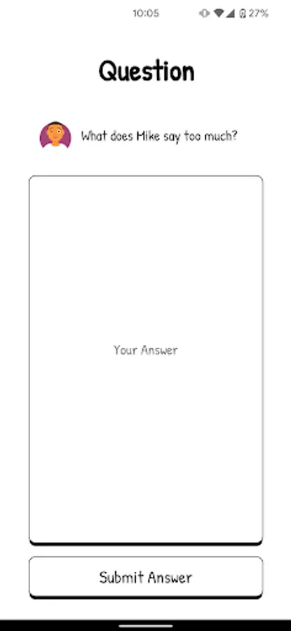 Laugh out loud with "What?", the fun party game that will put your sense of humor to the test. With a variety of silly questions about a random playmate, you and your friends will be challenged to find the funniest answers and then vote on the best one.