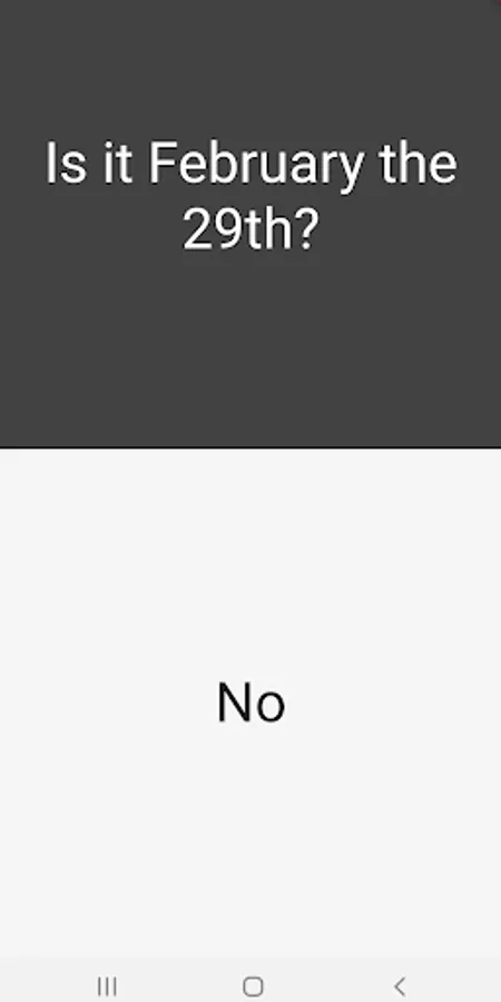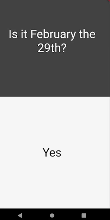 The app checks the date to see if it is 29th of February. If it is not, the answers displayed is no. If it is, then the app displays "Yes". That is all it does.