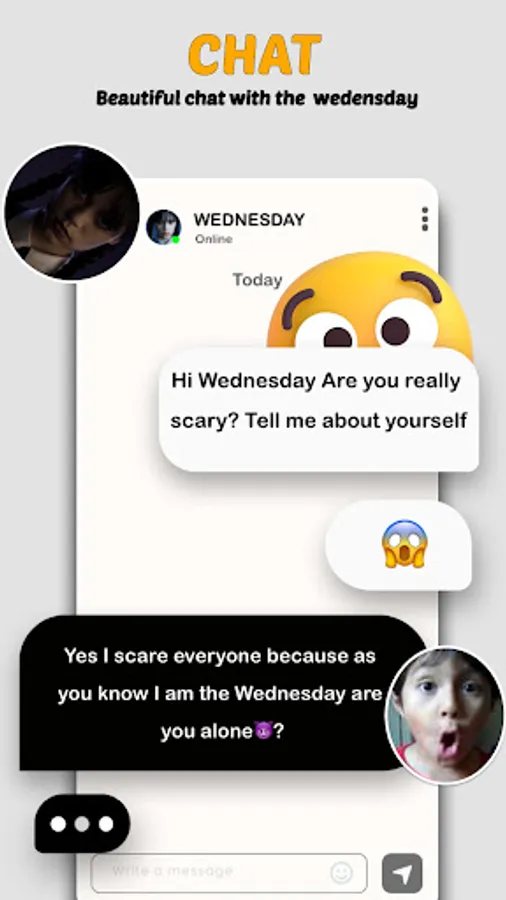 β wednesday call and chat is a simple and easy application for you to make a fake call video with your Celebrity wednesday scary and chat live with him live, Enjoy calling your favorite singer wednesday juan cat and chat in an easy way, feel free and download this wednesday horror video call app for fun and prank your friends and The slender Video Call & Chat angela"s Simulator is a simple application directed to fans wednesday ππ