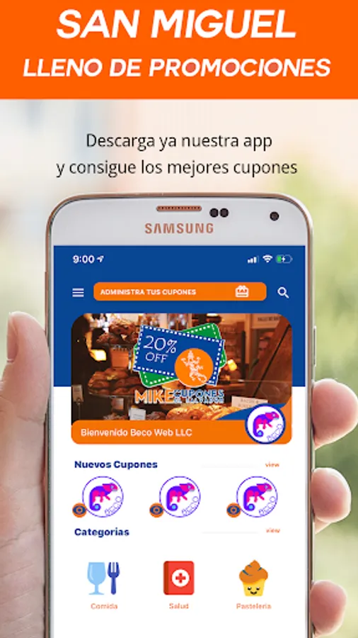 "Gracias por descargar nuestra app, mi nombre es Alma de Coreas, y soy una miguelena de corazón, desde que emigre de El Salvador he tenido el compromiso por hacer algo para nuestro querido San Miguel; y a razón de ello nace Mike Cupones; una plataforma dedicada con mucho cariño para emprendedores"