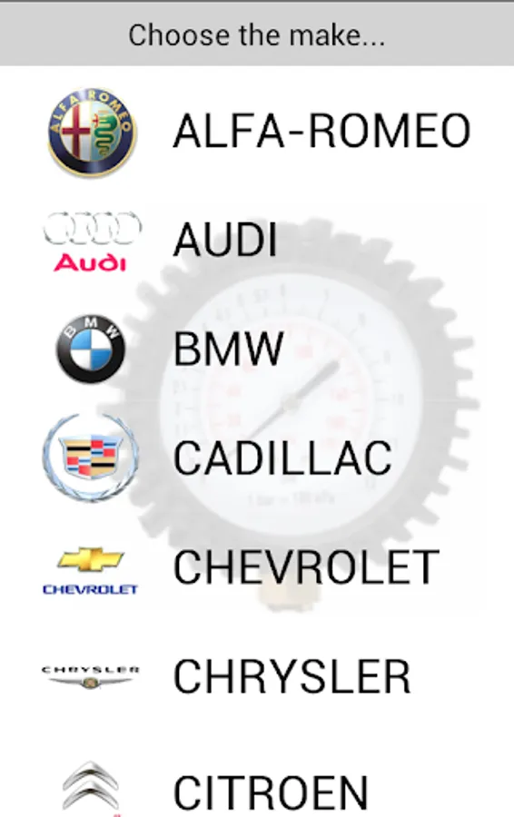 ALFA-ROMEO, AUDI, BMW, CADILLAC, CHEVROLET, CHRYSLER, CITROEN, DACIA, DAIHATSU, DODGE,