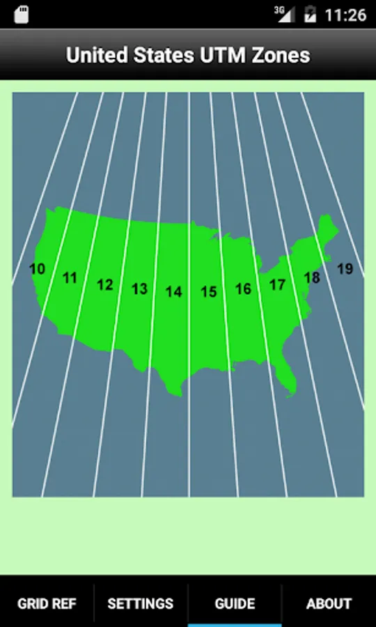 App will operate internationally. App includes a graphical guide to the United States (USA) UTM Zones.