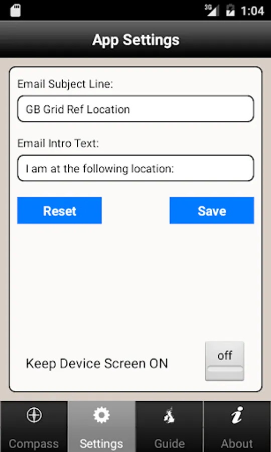 The screen can, optionally, be set to stay on, for continued on-screen display of Grid Reference information.