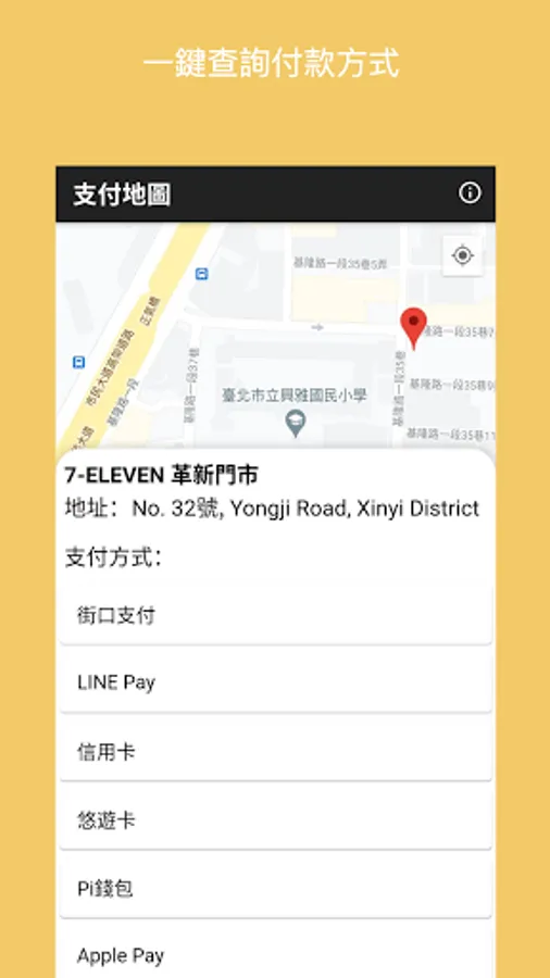 -Check the store's payment method with just one button.