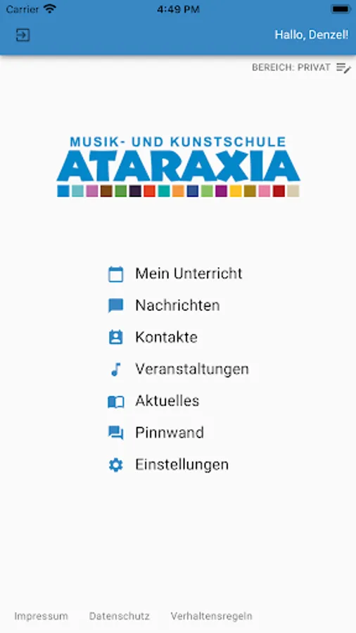 With the ATARAXIA app you can stay up-to-date safely and comfortably in all matters relating to the music and art school ATARAXIA.