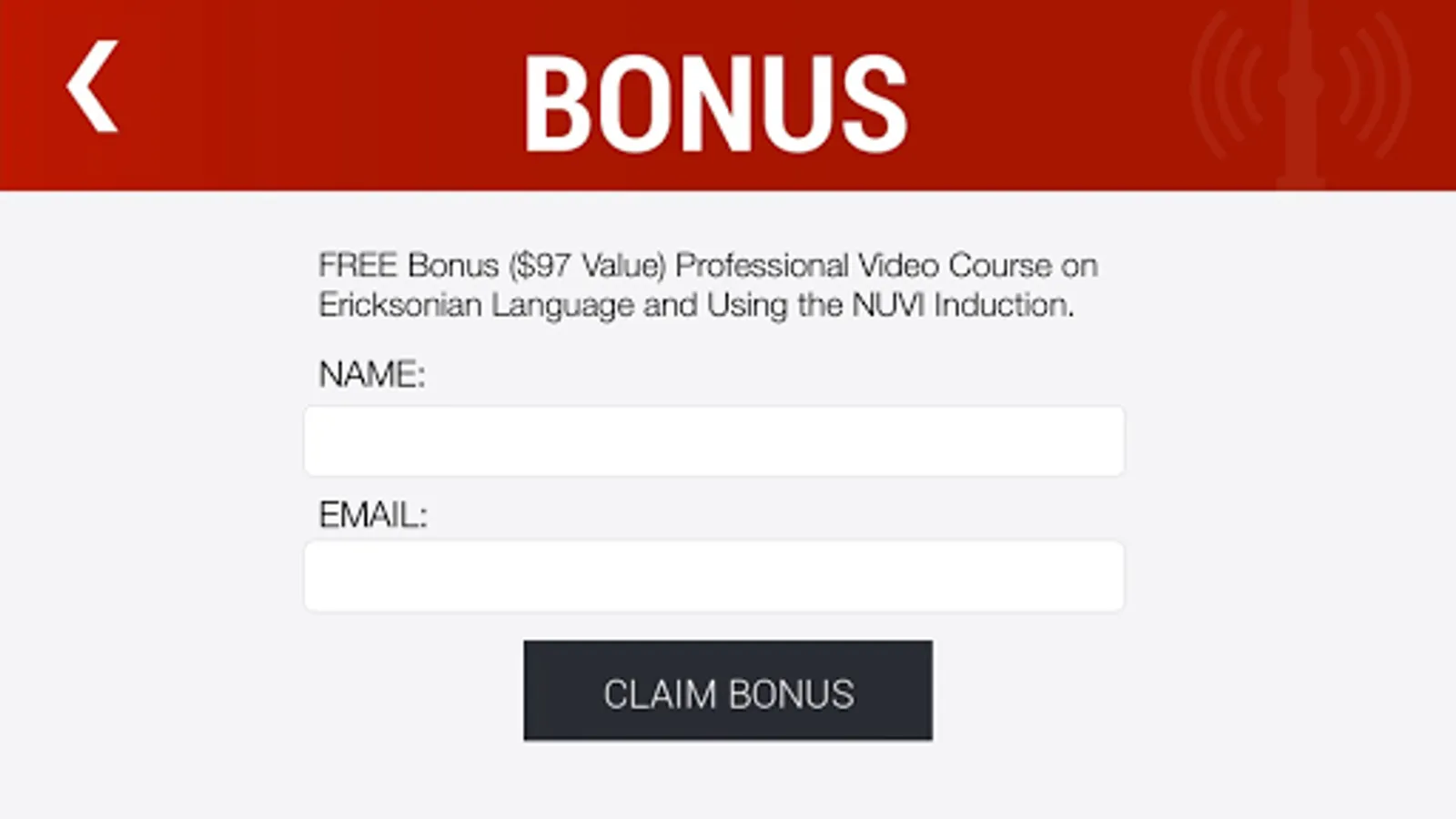 IMPORTANT: To get the most from this app be sure to claim the free BONUS video course. It's about 45 minutes of high quality video training to teach you exactly how to use this app to practise your Ericksonian hypnosis skills.