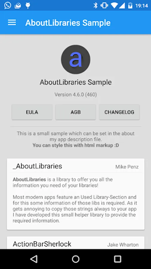 Most modern apps feature an "Used Library"-Section and for this some information of those libs is required. As it gets annoying to copy those strings always to your app I've developed this small helper library to provide the required information.