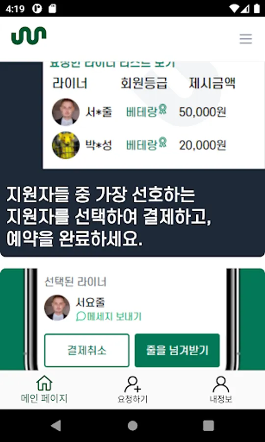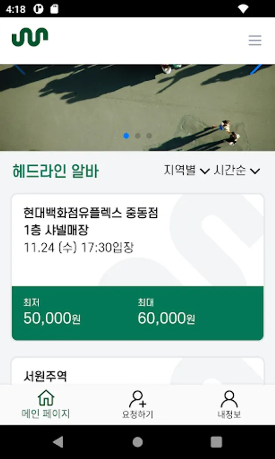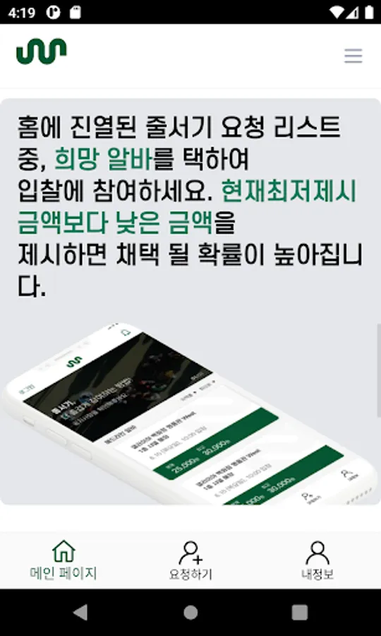 홈에 진열된 줄서기 요청 리스트 중, 희망 알바를 택하여
