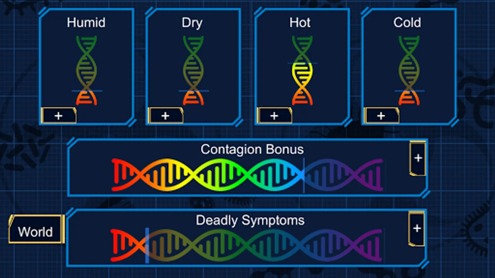 You are the worst strain of microbe in history. Starting with a modest infection in a random region of Earth, you use unlimited evolution powers to infect every human. You'd better be fast, because the humans are racing against you to find a cure and kill you.