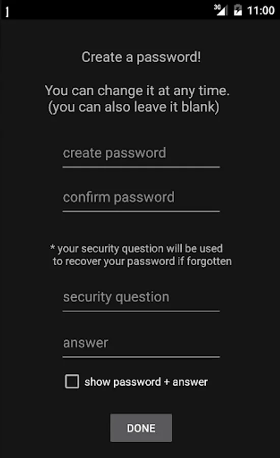 Create a password to secure your information, or leave the password blank so you don't need to enter a password to log in. Change your password and/or security information (to recover password) at any time.