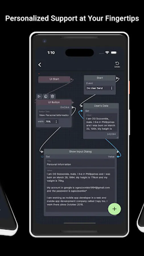 UI Button - with this UI, you can display a button on the chat and you can provide functions when button is clicked
