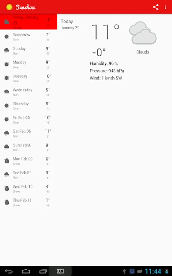 - Weather forecast for the next 14 days. Including High / Low temperatures, humidity levels, wind speed and atmospheric pressure.