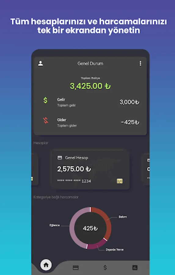Are your spending out of control? Hesapp is for you, you can create as many accounts as you want and track your income and expenses under these accounts.