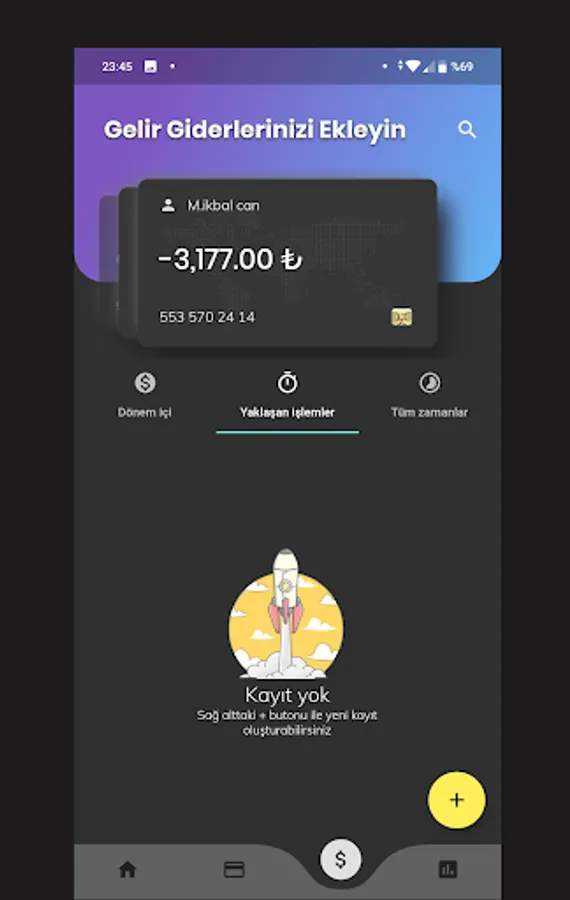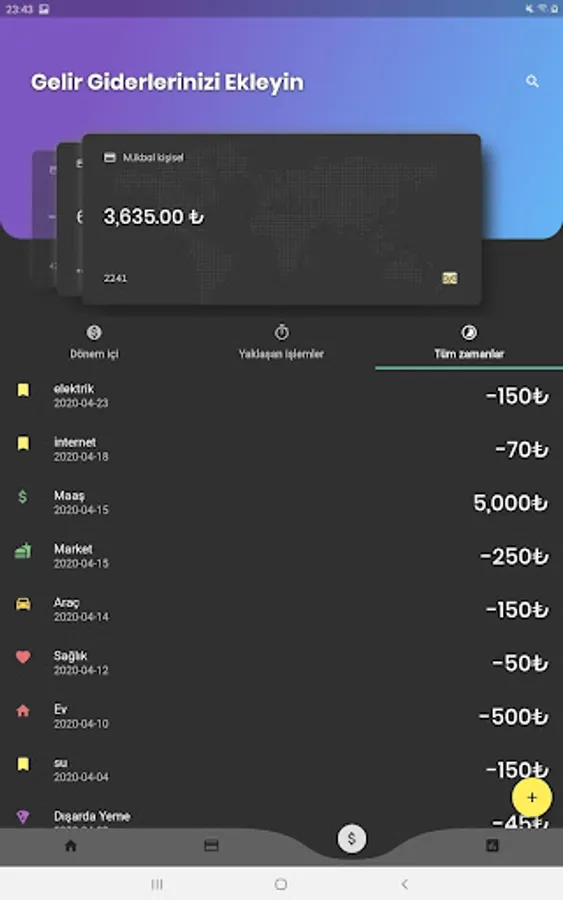 With this application, where you can track your income and expenses, you can create as many accounts as you want and save the income and expenses.